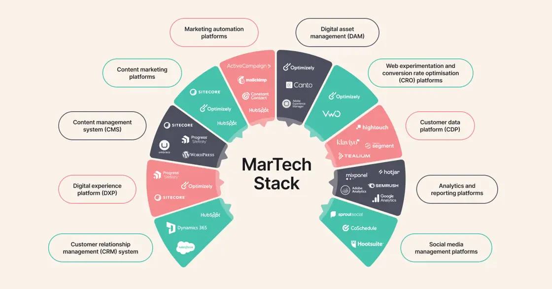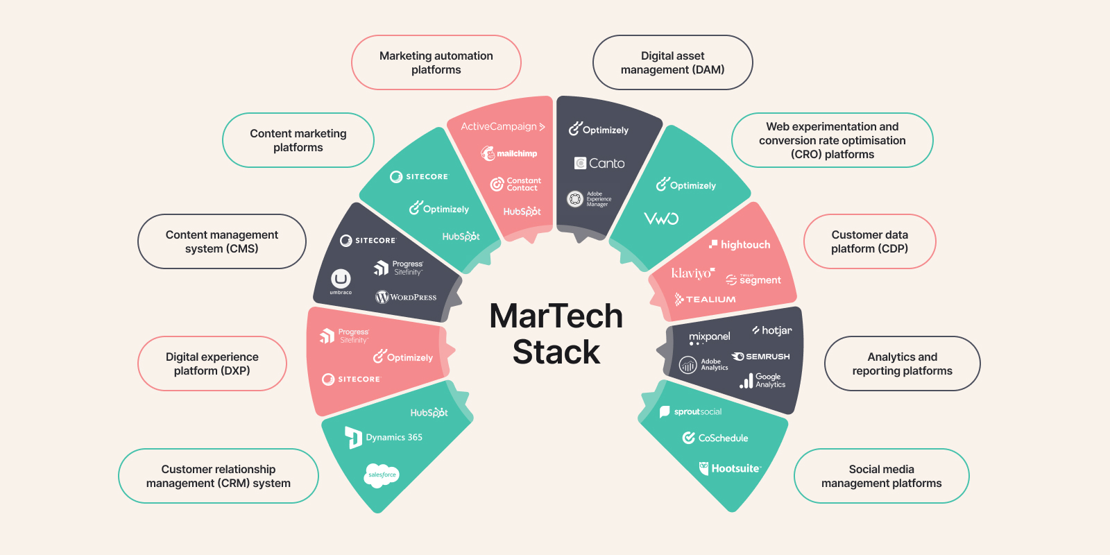 - A well-structured martech stack aligns with business goals, connects various functions, and creates a seamless customer experience.