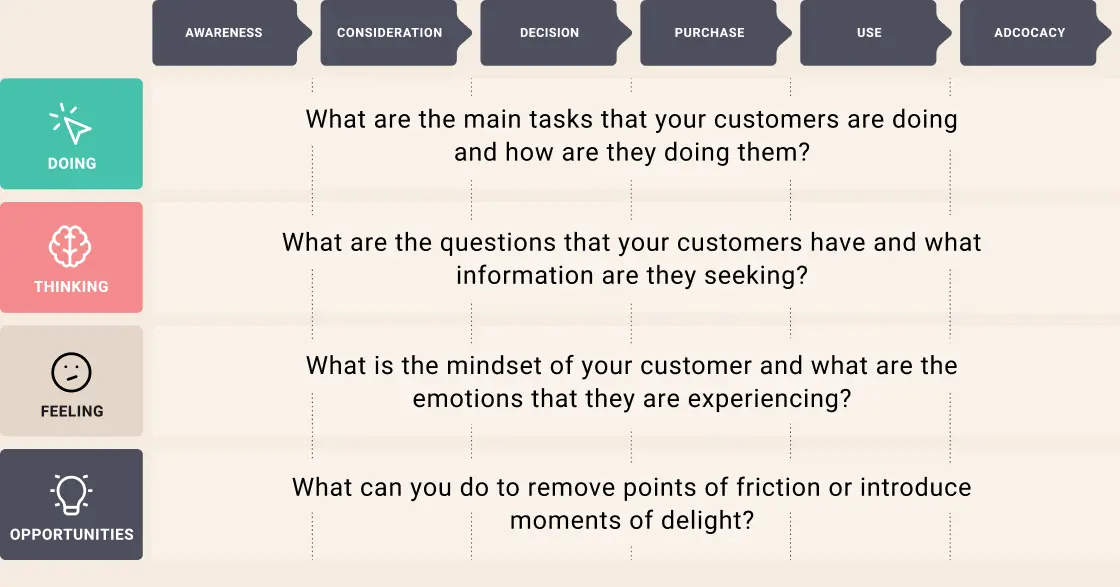 Customer journey mapping: A customer journey map is a storyline of every engagement a customer has with a service, brand, or product. The creation of a journey map puts the organisation directly in the mind of the consumer, so they can see and understand their customer's processes, needs, and perceptions.