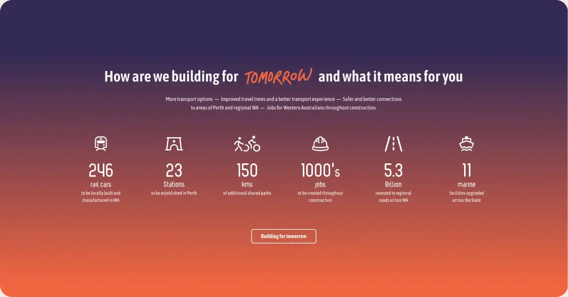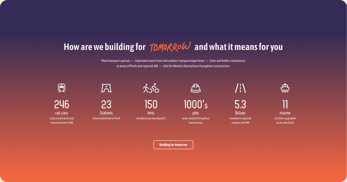 It’s been exciting to work on a project that leverages data to communicate a story of positive change and economic benefits. We’re proud of the result and hope the people of Perth get value out of the website.