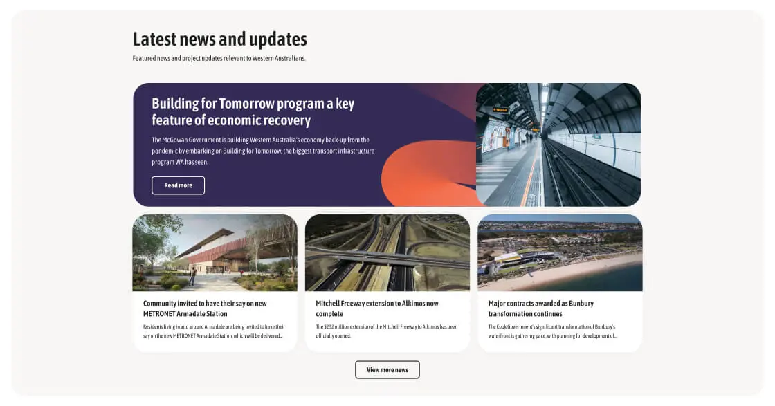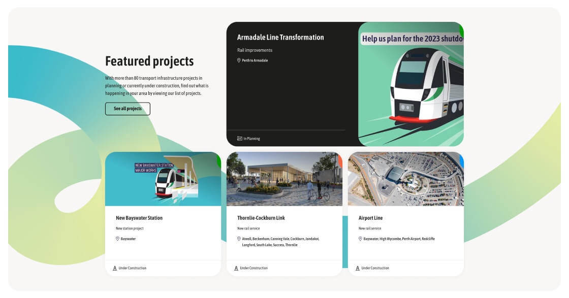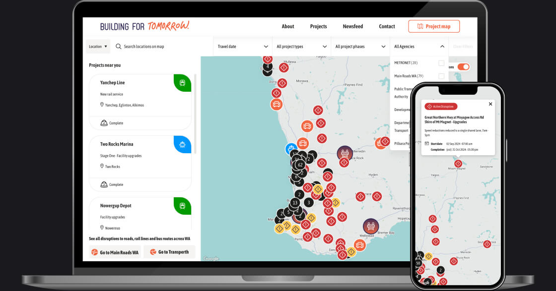 Our strategy combined extensive research, user testing, and stakeholder engagement—through workshops, focus groups, and interviews - to gather insights from diverse user groups, including residents, businesses, and project partners. This approach informed the design and functionality of a scalable, user-centric website that meets the evolving needs of DoT and the WA community, ensuring the final product was both future-proof and aligned with stakeholder expectations.