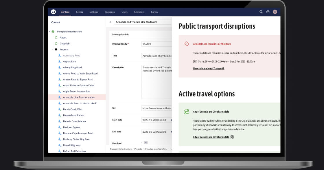 A key factor in the project's success was integrating the website with multiple systems from various government departments to display real-time data, such as disruptions and critical announcements. Our technical team developed a secure API to gather, centralise, and consolidate this disparate information into a cohesive and user-friendly experience.