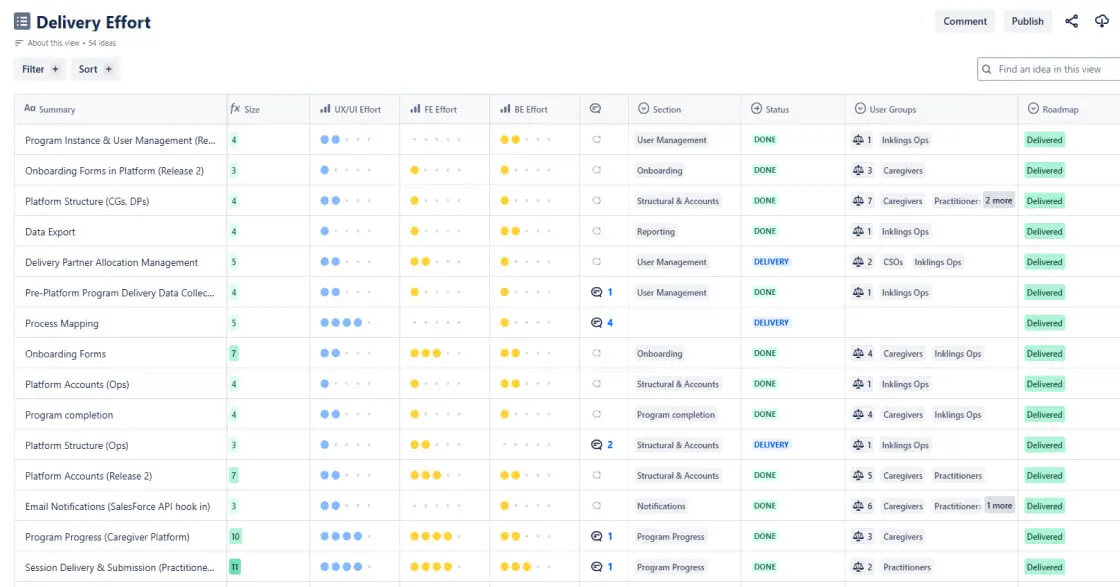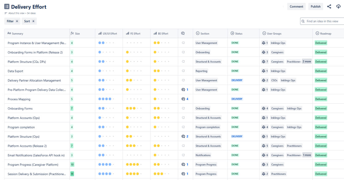 With a wide range of potential features to consider, and budget and timeframes to manage, prioritisation was essential. Using tools like Jira Product Discovery, we evaluated and ranked features based on their value, ensuring the platform delivered maximum impact within the available resources.