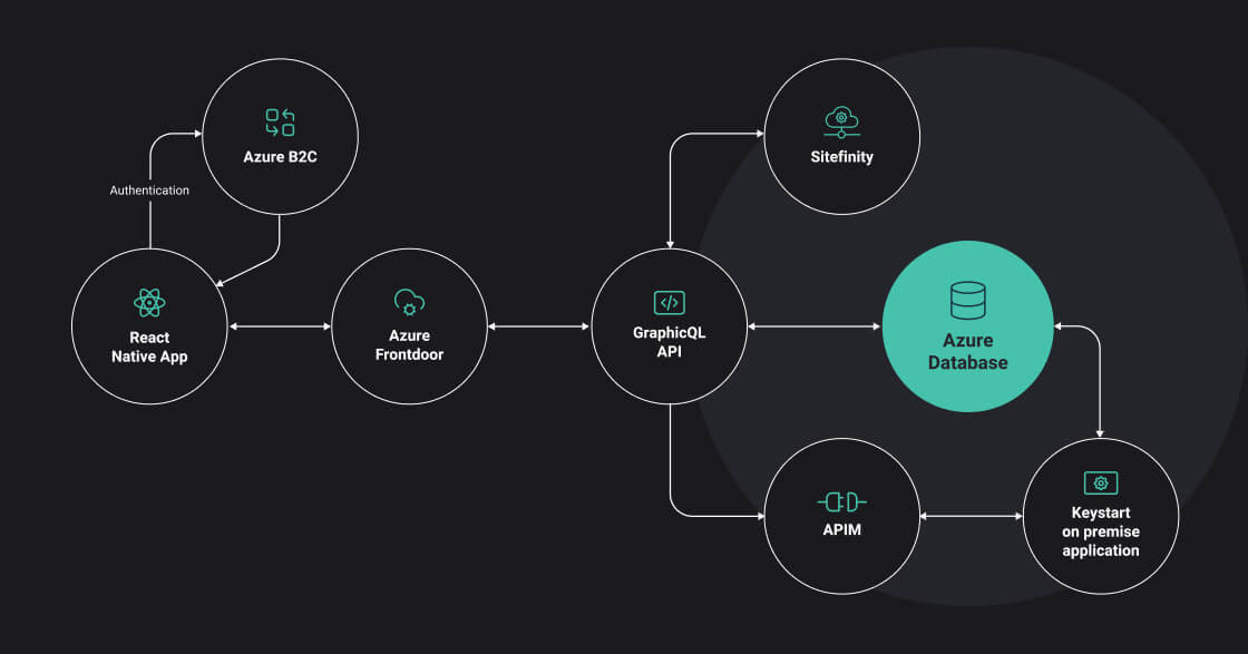The app was developed using a diverse array of technologies, combining React Native for the iOS and Android applications with a .NET GraphQL middleware API layer. Integration was established through Microsoft Azure cloud infrastructure. Firebase was used for push notifications, while seamless content integration was achieved through connections with CMS platform Sitefinity to pull in articles and other relevant content.